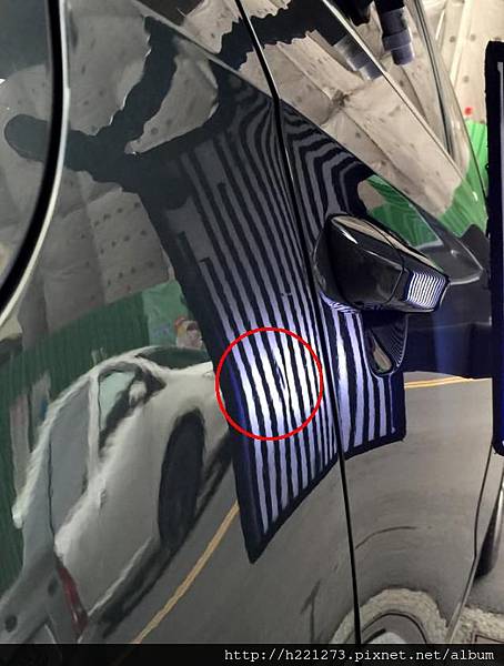 | 汽車凹痕修復前(紅色圈起處) |